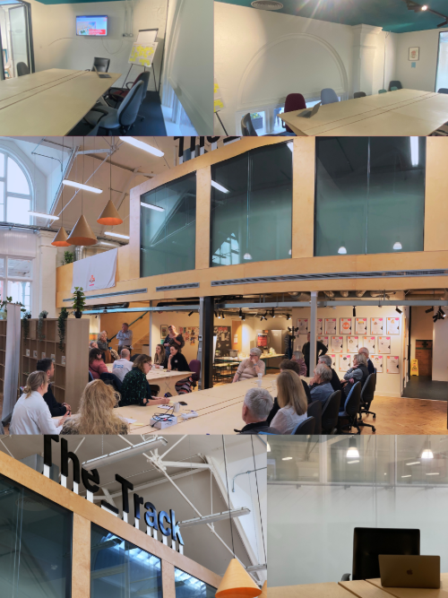 The _Track offers a 10/12 person meeting room, Pagham on our mezzanine floor level equipped with monitor and whiteboard whilst our main open plan coworking space can be configured for medium to larger meetings suitable for up to 75 approx.